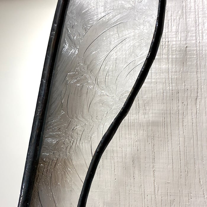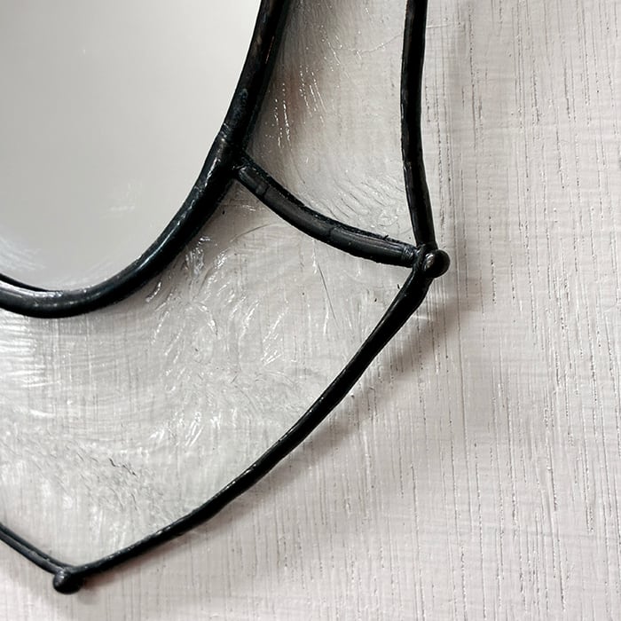 ガラスとガラスを繋いでいるハンダの部分は黒い錆のような加工を施し、アンティーク風な重厚感のある雰囲気に仕上げています。