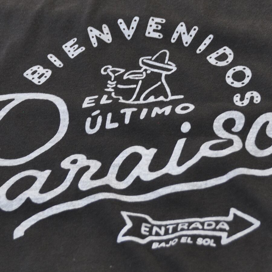 スペイン語で『最後の楽園へようこそ、入り口はこちら』とプリントされております。