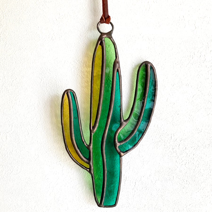 オリジナルデザインのサボテンの形をしたステンドグラスです。