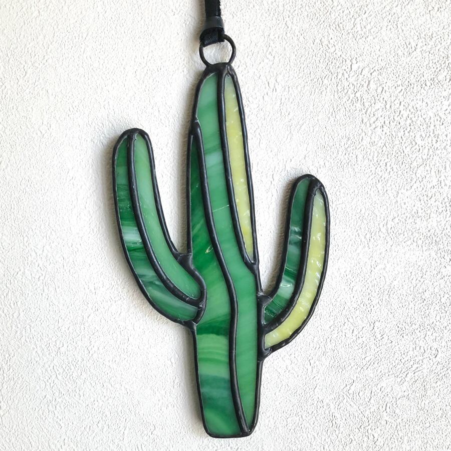 オリジナルデザインのサボテンの形をしたステンドグラスです。