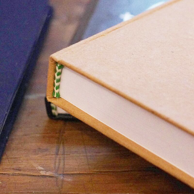 毎日持ち歩いたりしても、しっかりとした表紙なので最後のページまで、綺麗な状態で使っていただけます。角の形やサイドの色、罫線の色にもこだわった伝統的な手作りのノートです。