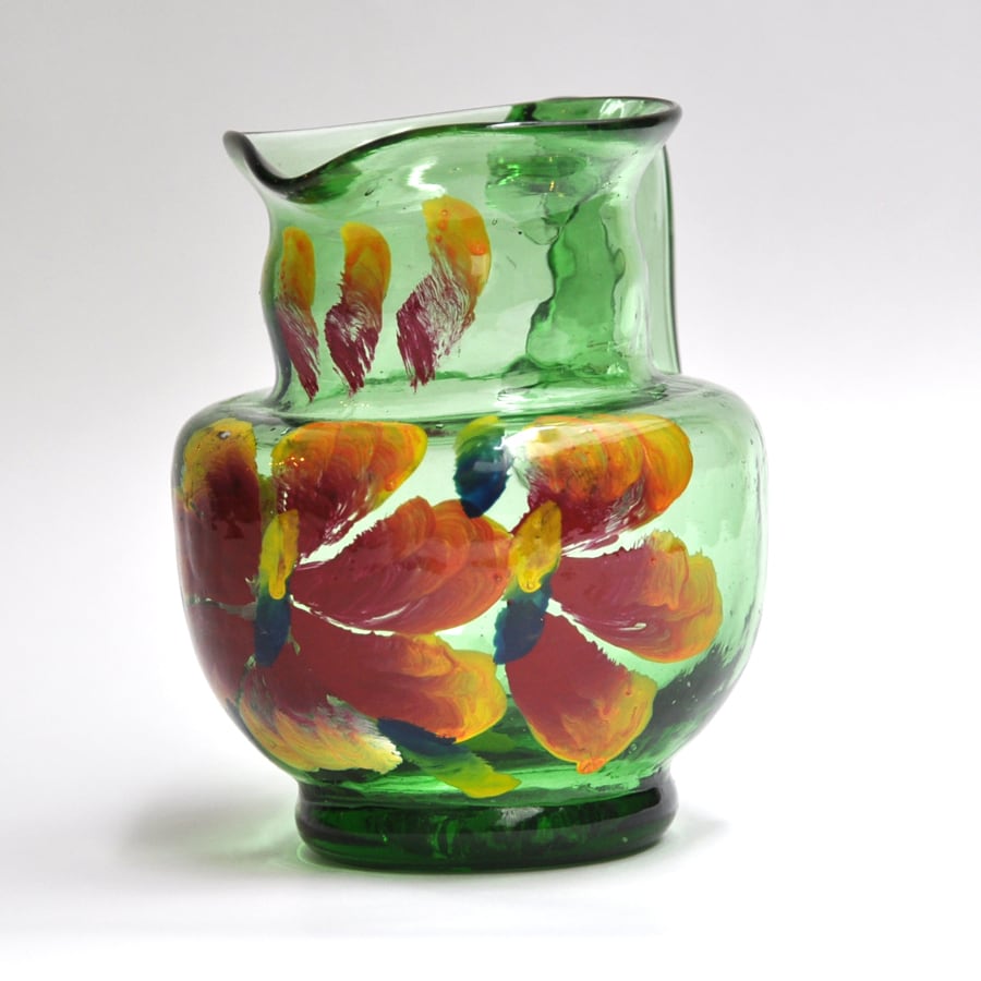 EREACHE PUEBLA GLASS B エレアチェ ピッチャーB メキシコ プエブラ 花ペイント
