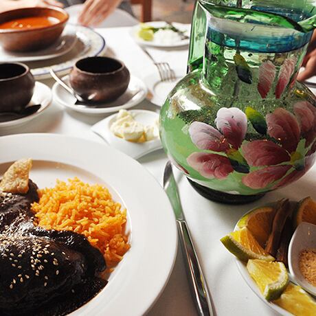 プエブラ州で80年続く老舗工房で作られるガラス製品です。昔ながらの製法で作られるガラスは、不規則に並ぶ気泡や、微かに歪んだフォルムが、手作りならではの味です。ひとつひとつ手描きで描かれた花は、量産品にはないぬくもりがあります。