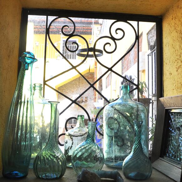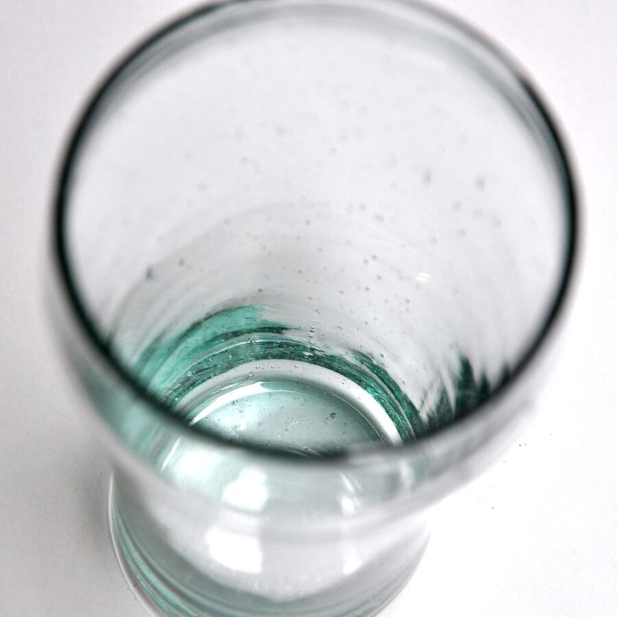 プエブラ州で80年続く老舗工房で作られるガラス製品です。昔ながらの手吹きの製法で作られるガラスは、不規則に並ぶ気泡や、微かに歪んだフォルムが、手作りならではの味です。ガラスの厚みやサイズもひとつひとつ異なり、全く同じものは存在しません。