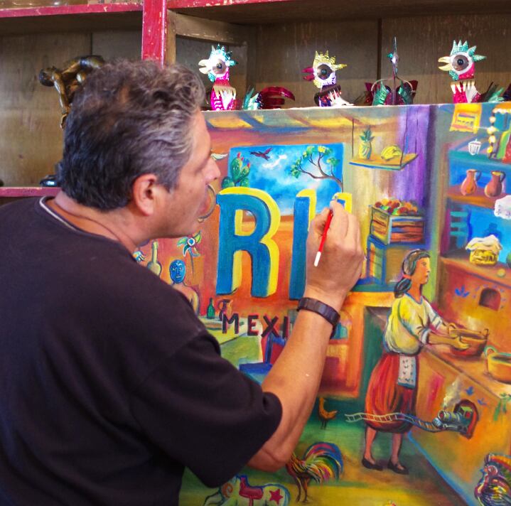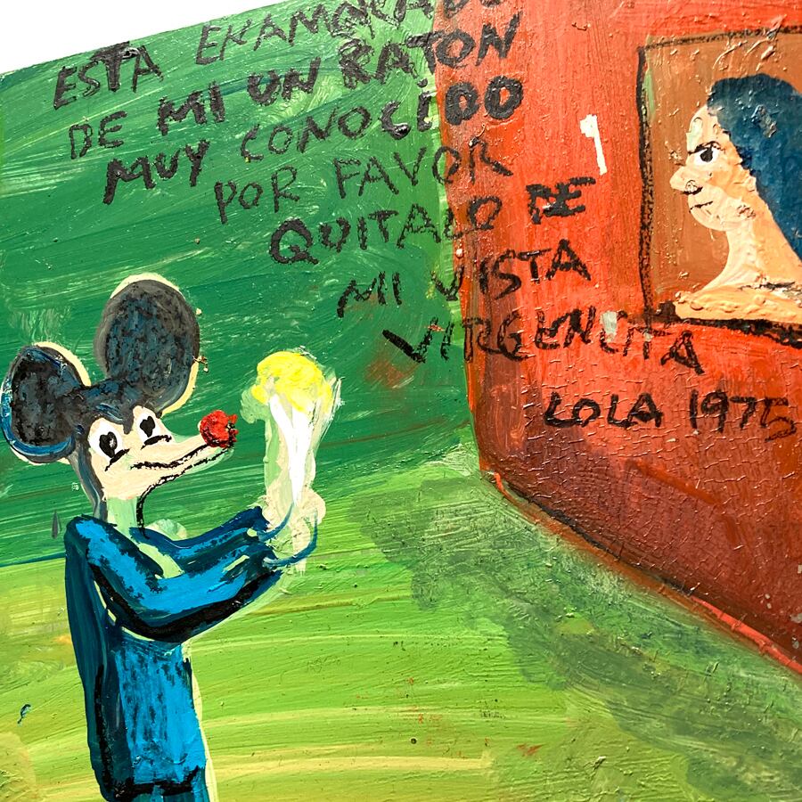 絵を描く人は一般人からレタブレロ(エクスボト職人)までいるそうですが、この絵を描いたミゲルさんはメキシコの本で紹介もされた有名なプロのレタブレロさんです。