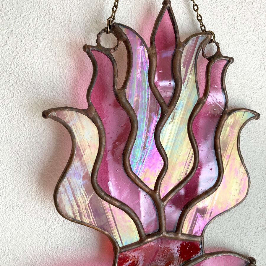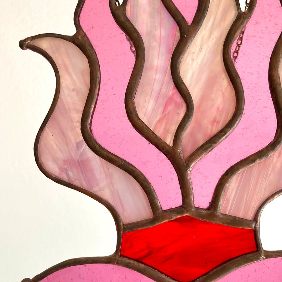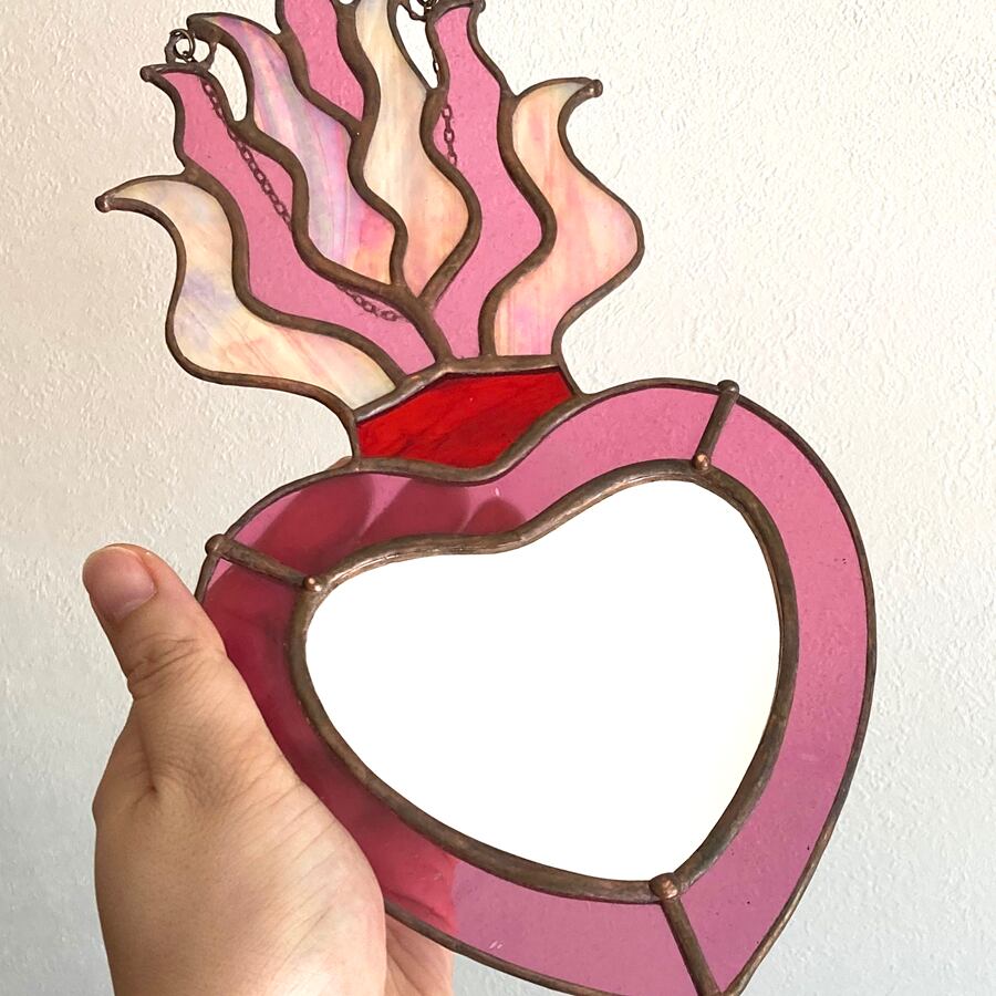 ハートの形をしたステンドグラスの鏡です。