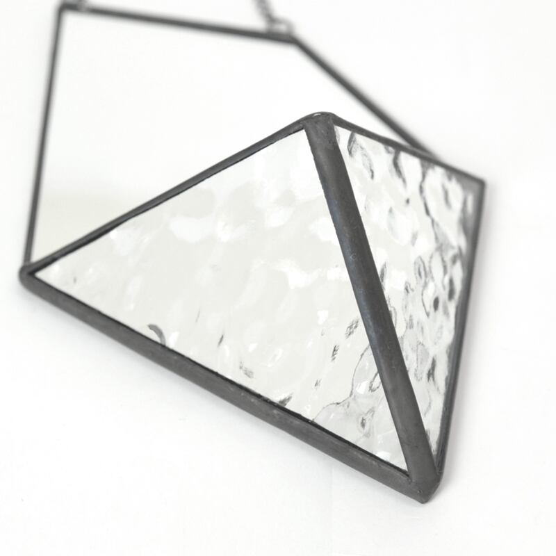 ガラスとガラスを繋いでいるハンダの部分は錆び加工を施し、アンティークの用な重厚感のある雰囲気に仕上げています。主張しすぎないデザインがどんなお部屋にも合わせやすいのでプレゼントにもオススメです。
