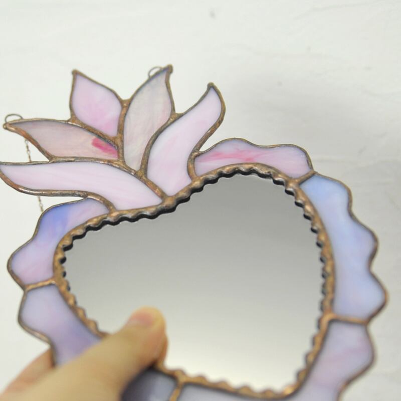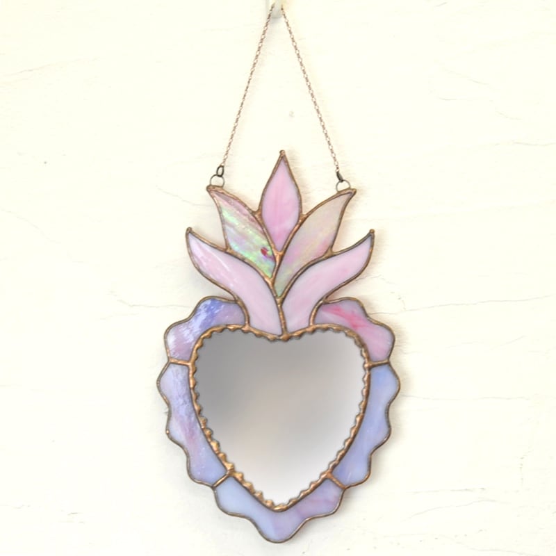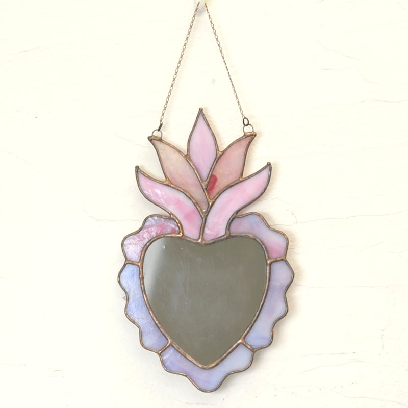 ハートの形をしたステンドグラスの鏡です。