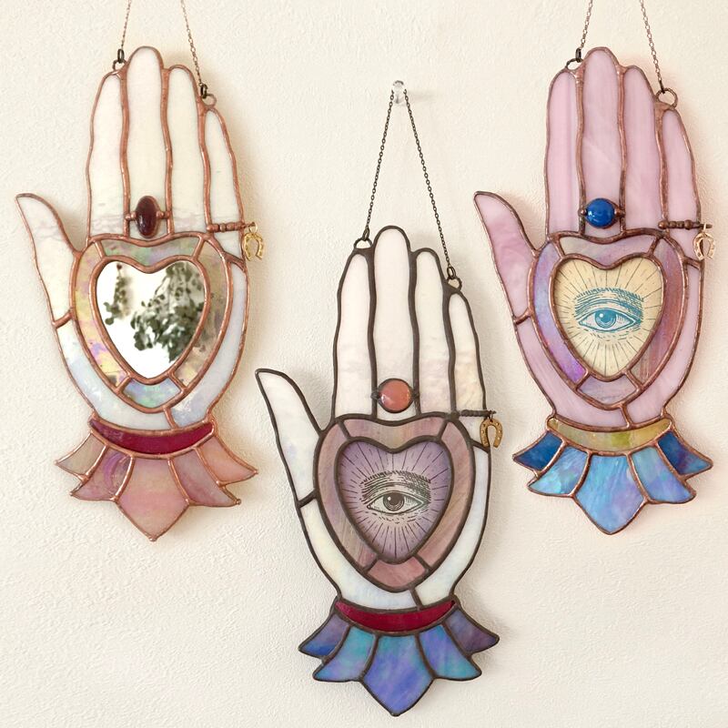 真ん中の指輪の部分はガラスの玉がついていて、小指にはラッキーアイテムの
