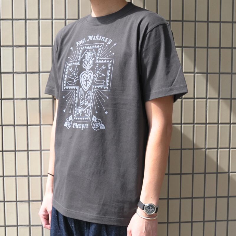CORAZON 十字架&ハート メキシコ スペイン語 Tシャツ チャコール
